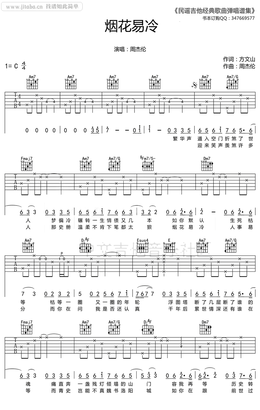 烟花易冷吉他谱 - 周杰伦 - C调吉他弹唱谱