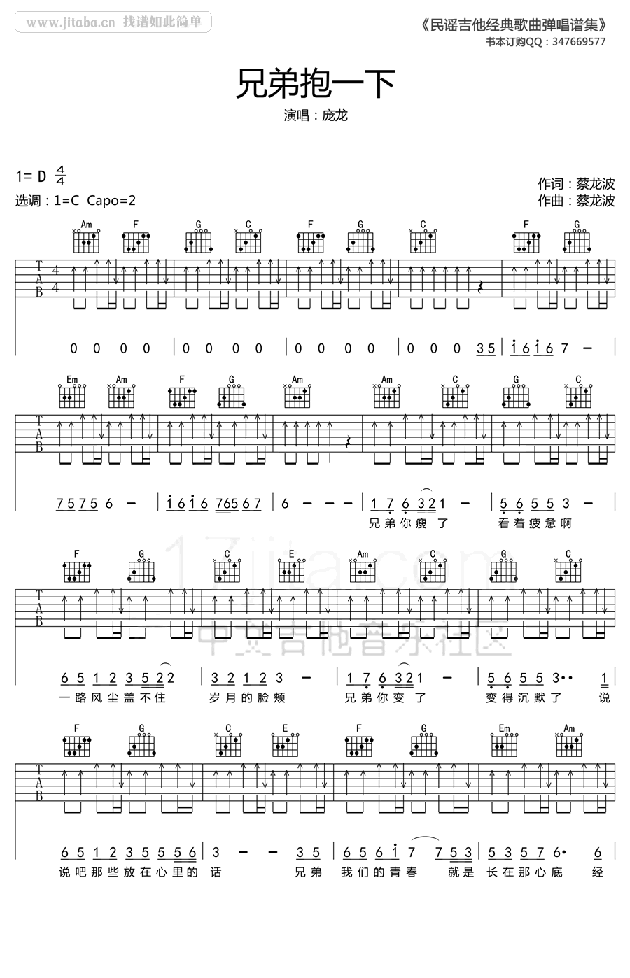兄弟抱一下吉他谱 - 庞龙 - C调吉他弹唱谱 - 原版