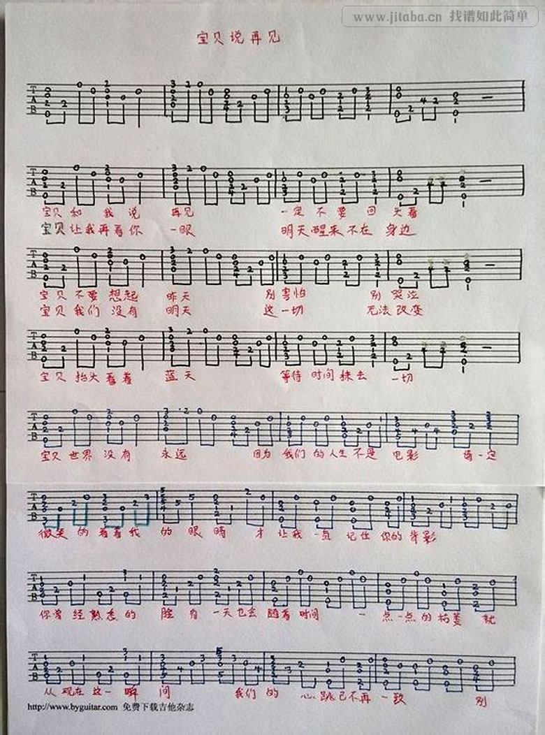 当前位置:琴谱网>吉他弹唱>宝贝说再见
