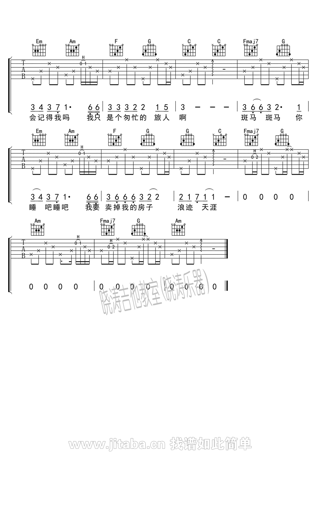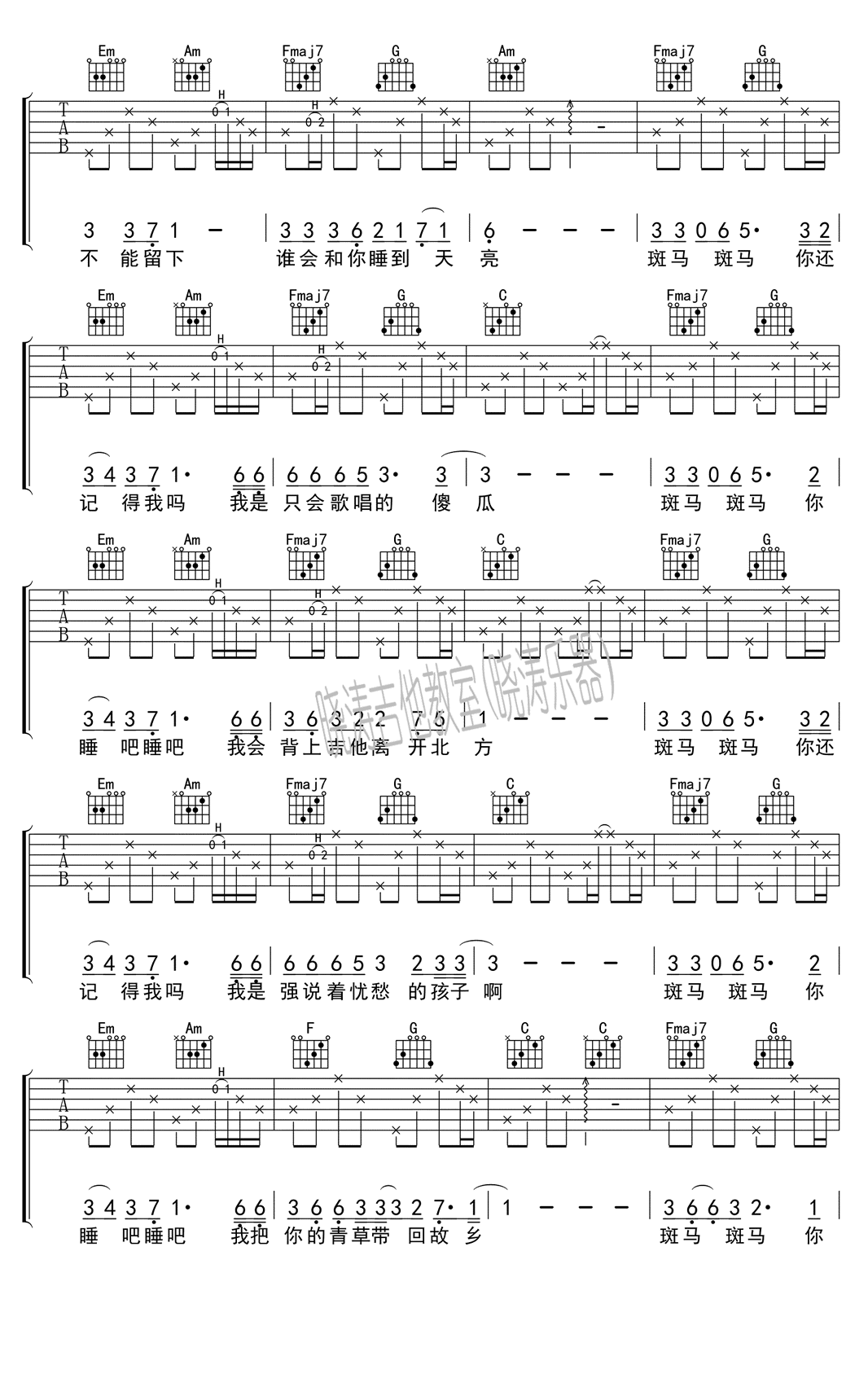 当前位置:琴谱网>吉他弹唱>斑马斑马