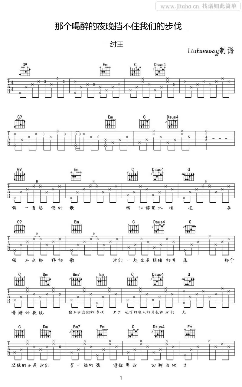 那个喝醉的夜晚挡不住我们的步伐吉他谱 - 吉他弹唱谱
