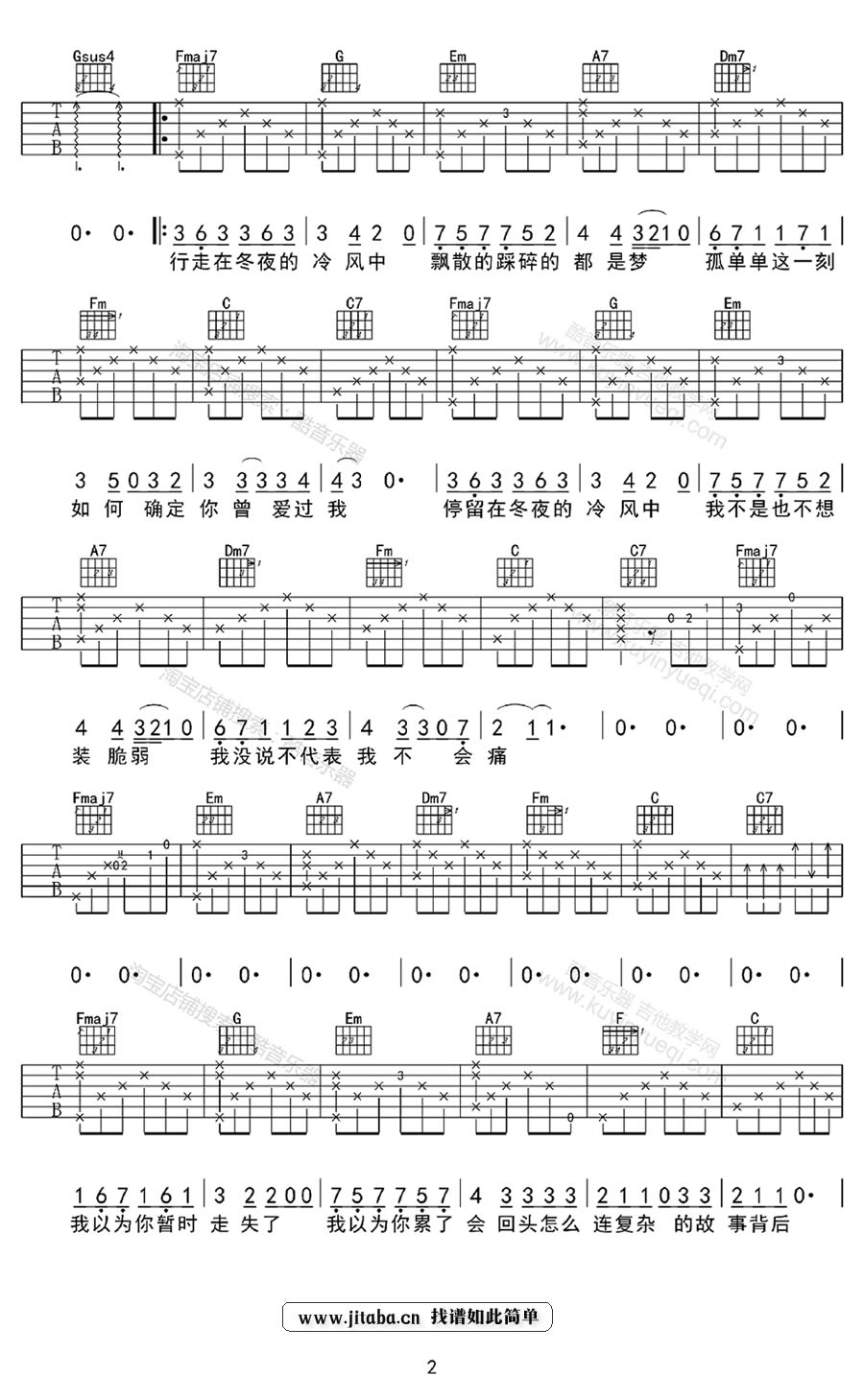 当前位置:琴谱网>吉他弹唱>走在冷风中