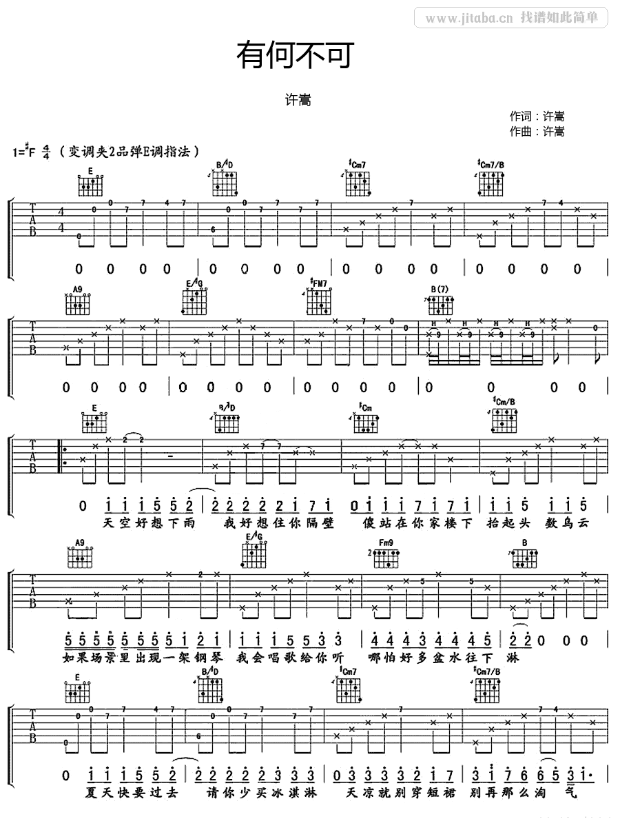 有何不可吉他谱 - 许嵩 - 吉他弹唱谱