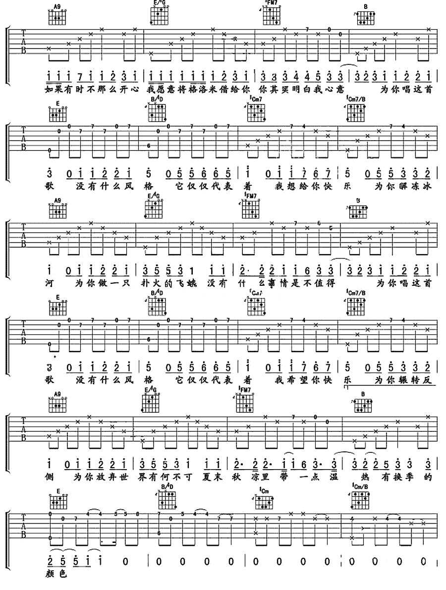 当前位置:琴谱网>吉他弹唱>有何不可