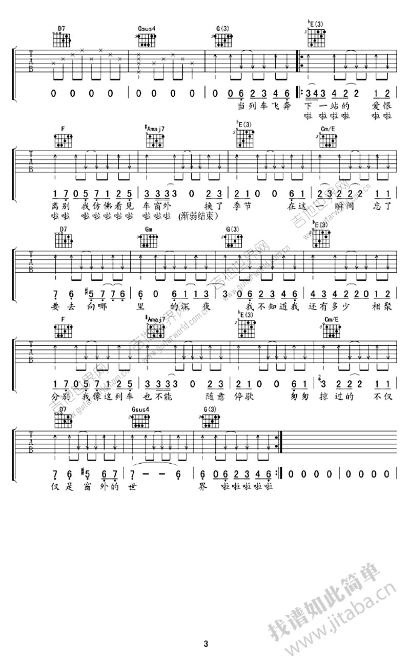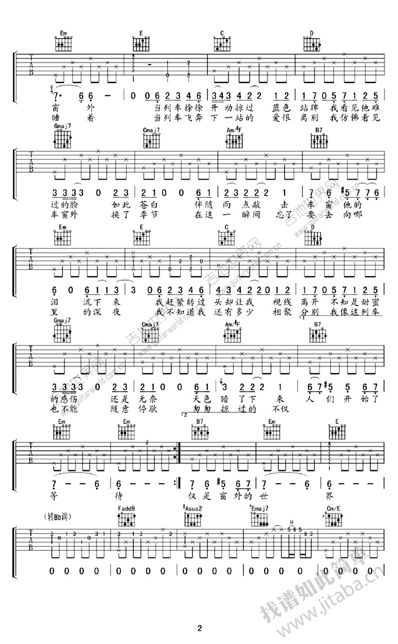 当前位置:琴谱网>吉他弹唱>车站六线