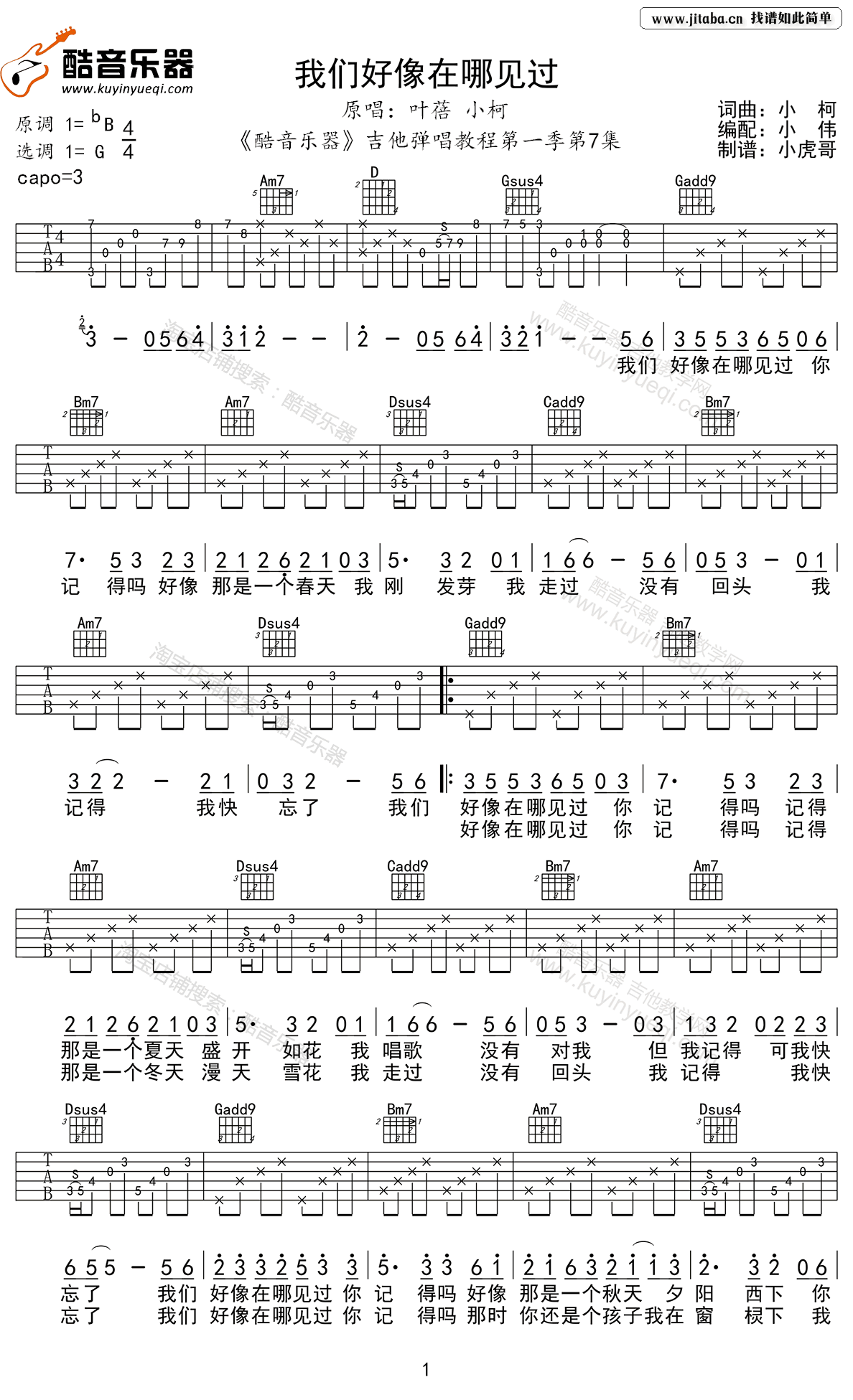 我们好像在哪见过吉他谱 - 小柯/叶蓓 - 吉他弹唱谱