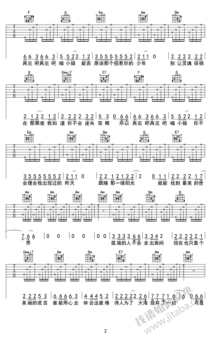 当前位置:琴谱网>吉他弹唱>再见吧喵小姐