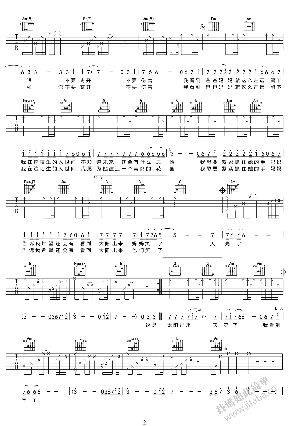 曲谱介绍: 韩红天亮了吉他谱,C调编配,高清图片谱两张谱例,天亮了六线谱。韩红的倾情演唱,唱出了无助、痛苦和希望。毕竟天亮了,最黑暗的一段已经过去,太阳升起,内心的希望之火重新燃起。天亮了用温柔又磁性的声音唱出能够让人落泪的感动。