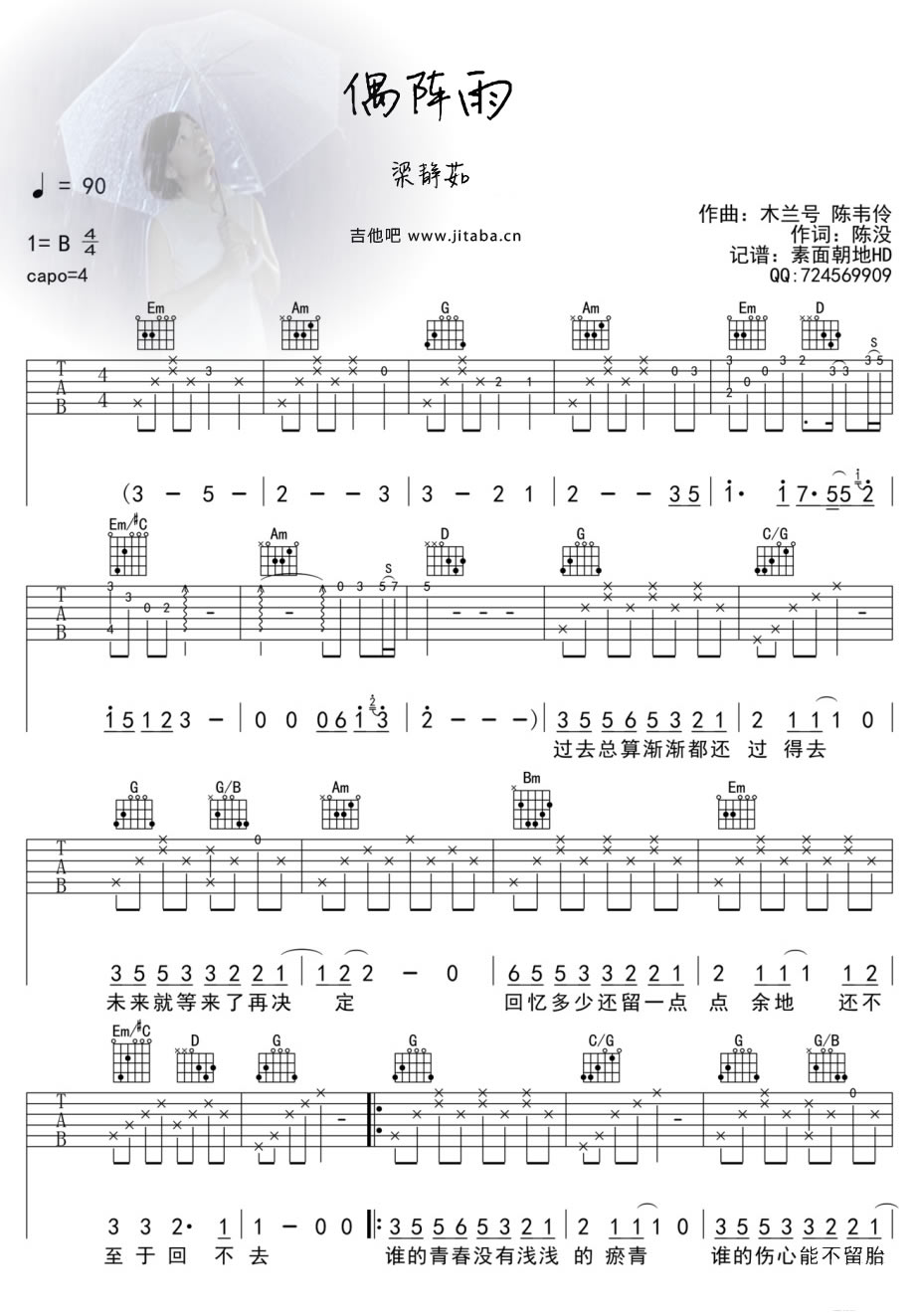 偶阵雨吉他谱 - 梁静茹 - 吉他弹唱谱