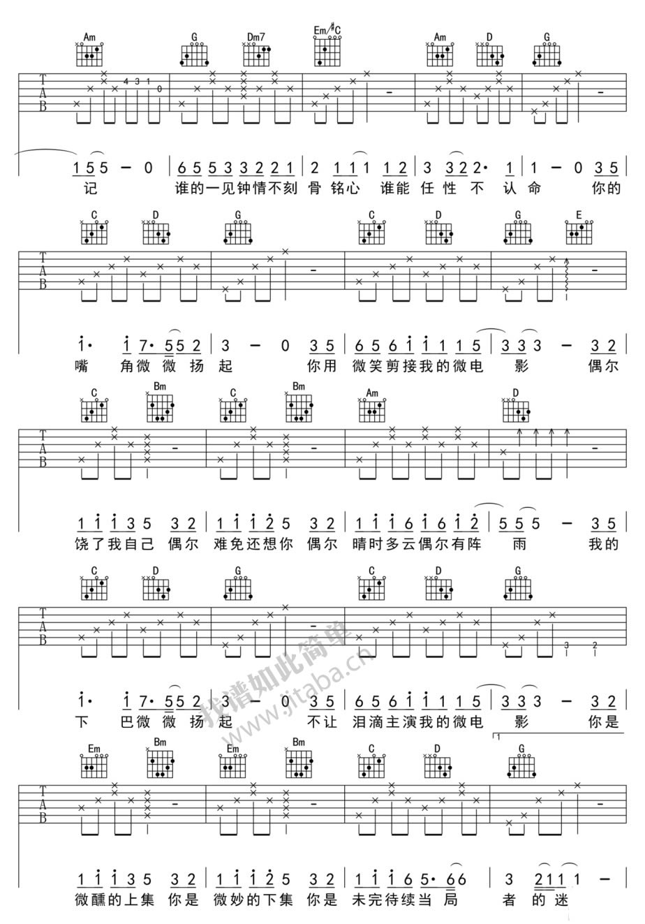曲谱介绍: 梁静茹偶阵雨吉他六线谱,变调夹capo四品,偶阵雨吉他谱,图片谱高清版,感谢素面朝地HD记谱。梁静茹音乐专辑《爱久见人心》中抒情主打《偶阵雨》一如既往的温柔磁性嗓音,唱出了一种单纯而坚定的爱情信仰。青春过往那段一见钟情的刻骨铭心,浓郁沉淀的歌声里除了回忆里淡淡的遗憾,还有珍惜眼前的淡定从容。梁静茹歌曲《偶阵雨》吉他弹唱谱,www.jitaba.cn推荐。