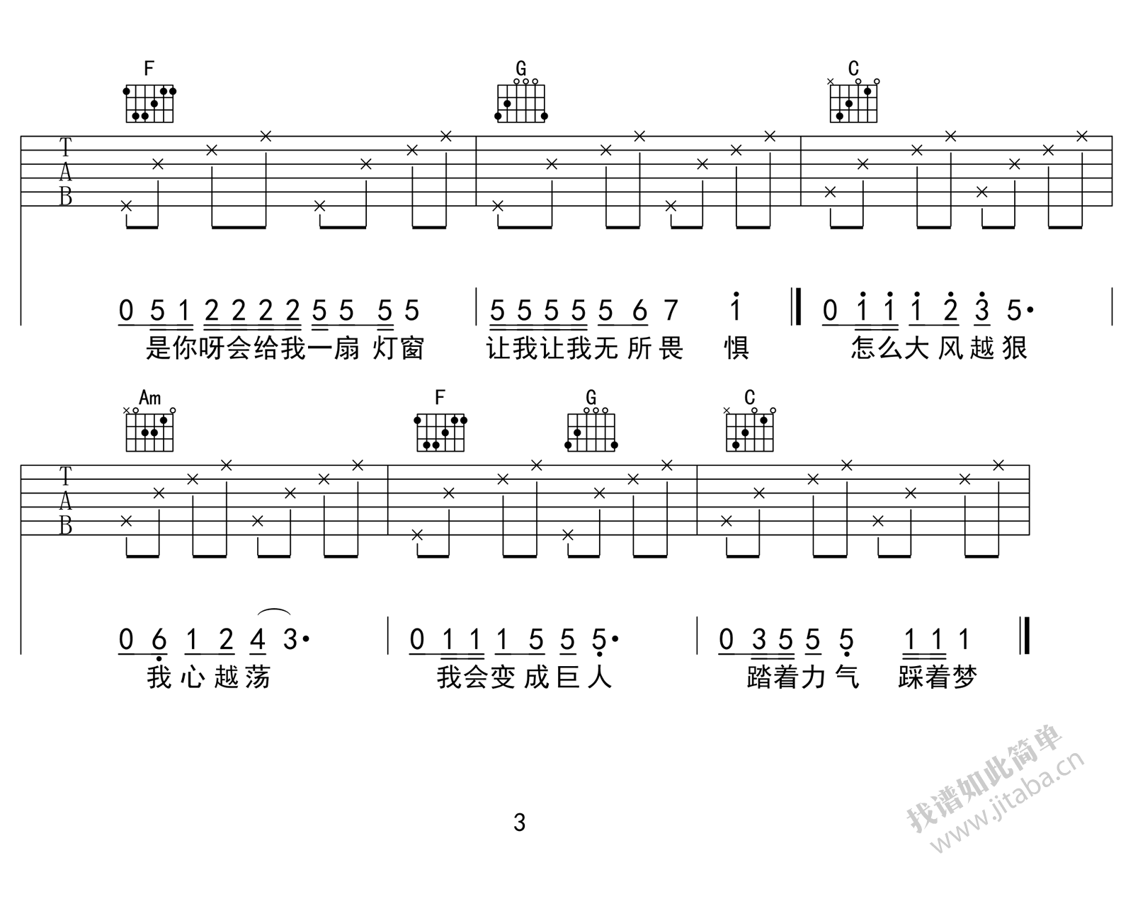 曲谱介绍: 沙宝亮野子吉他谱,野子六线谱高清版,原调E,变调夹夹三品,选用C调指法,三张图片谱。蒙面歌王节目无冕之王,流浪者沙宝亮演唱的野子吉他弹唱谱,感谢心动编配分享。