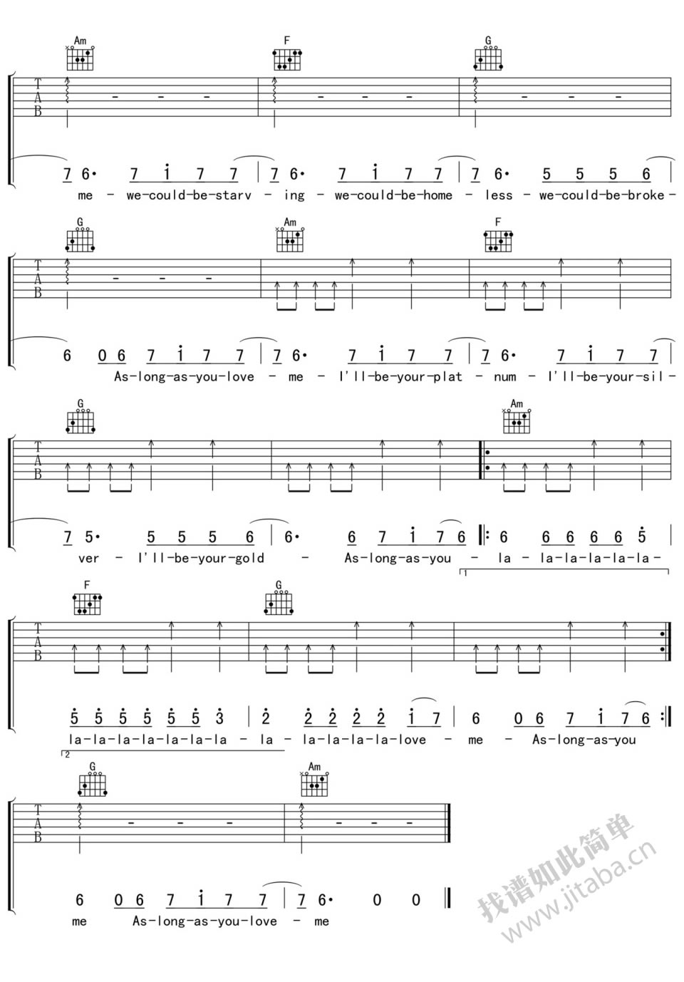 As long as you love me吉他谱 - As - 吉他弹唱谱