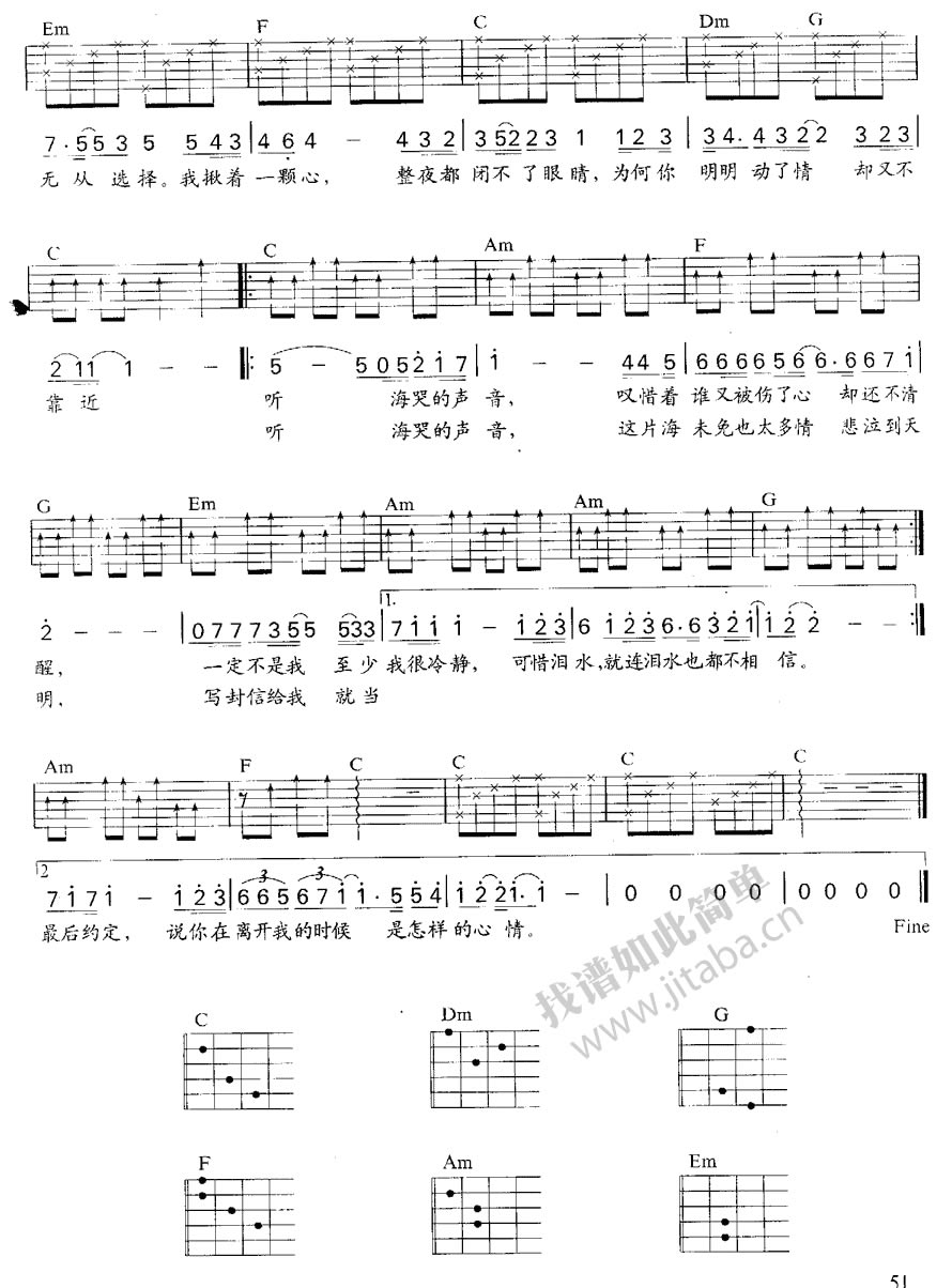 当前位置:琴谱网>吉他弹唱>听海