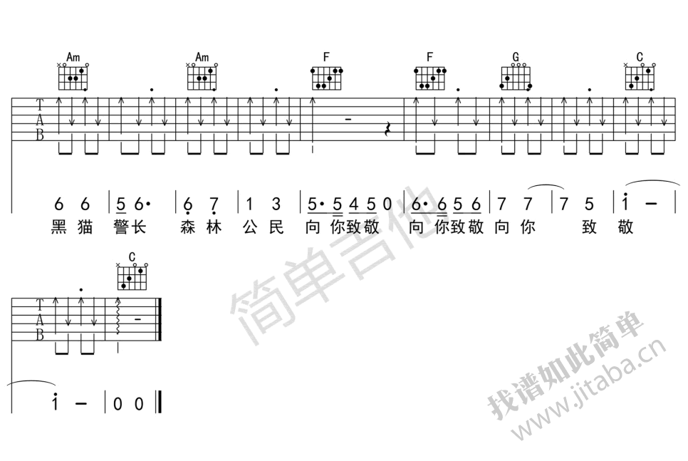 黑猫警长吉他谱 - 儿歌 - 吉他弹唱谱