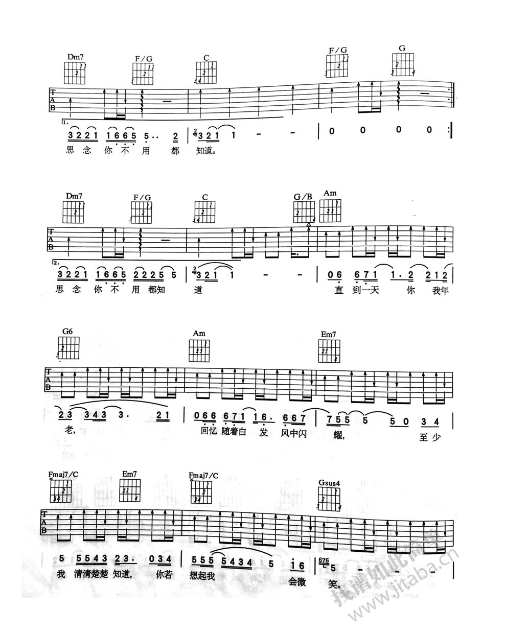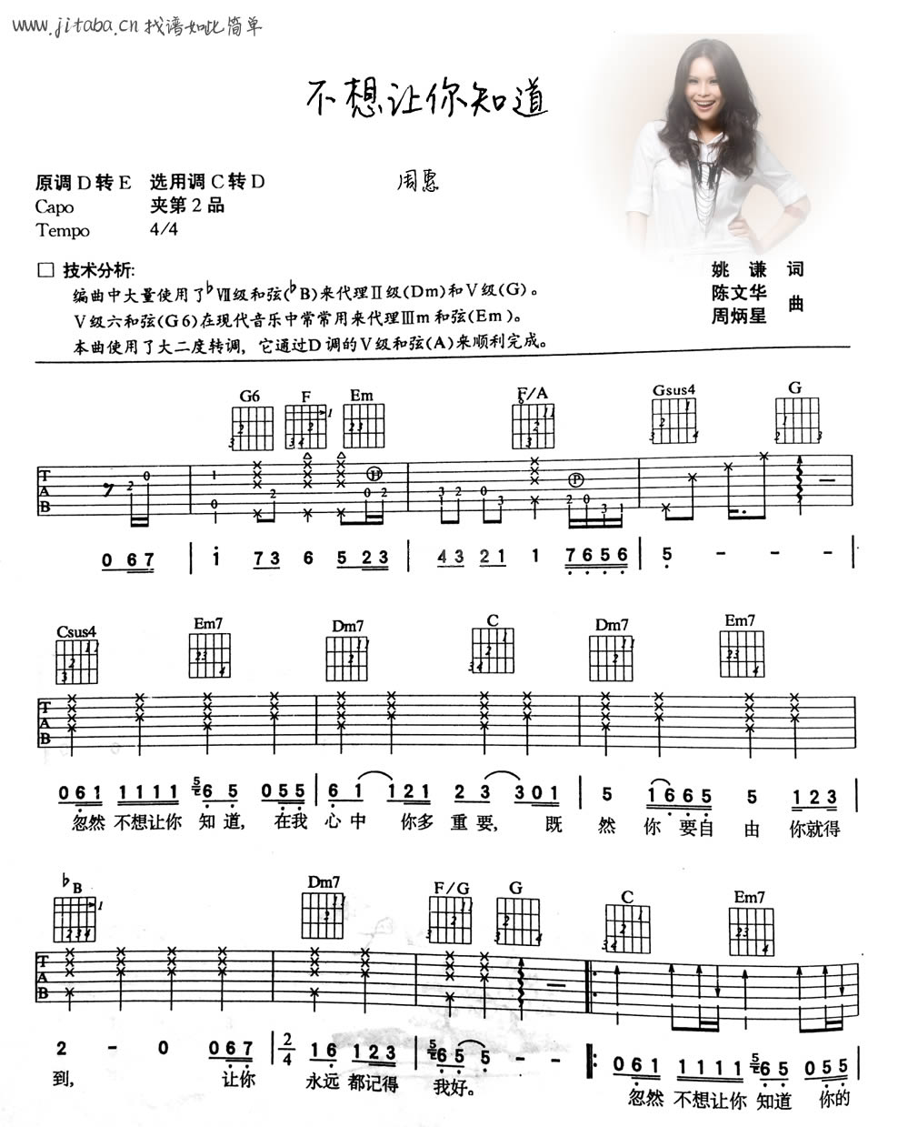 不想让你知道吉他谱 - 周惠 - 吉他弹唱谱