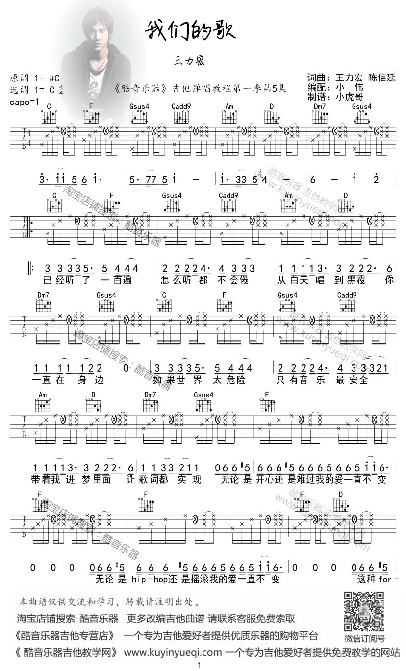 我们的歌吉他谱 - 王力宏 - 吉他弹唱谱