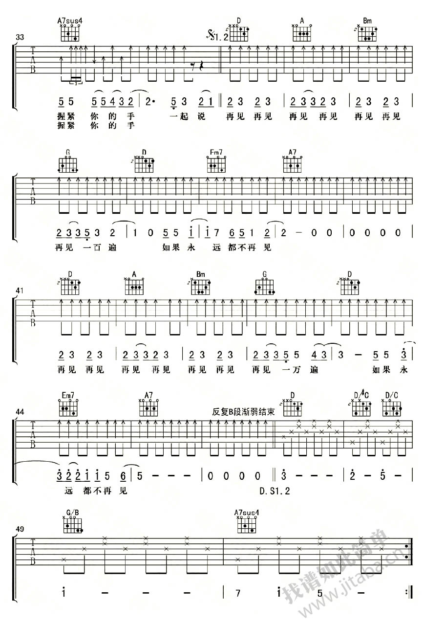 当前位置:琴谱网>吉他弹唱>再见再见
