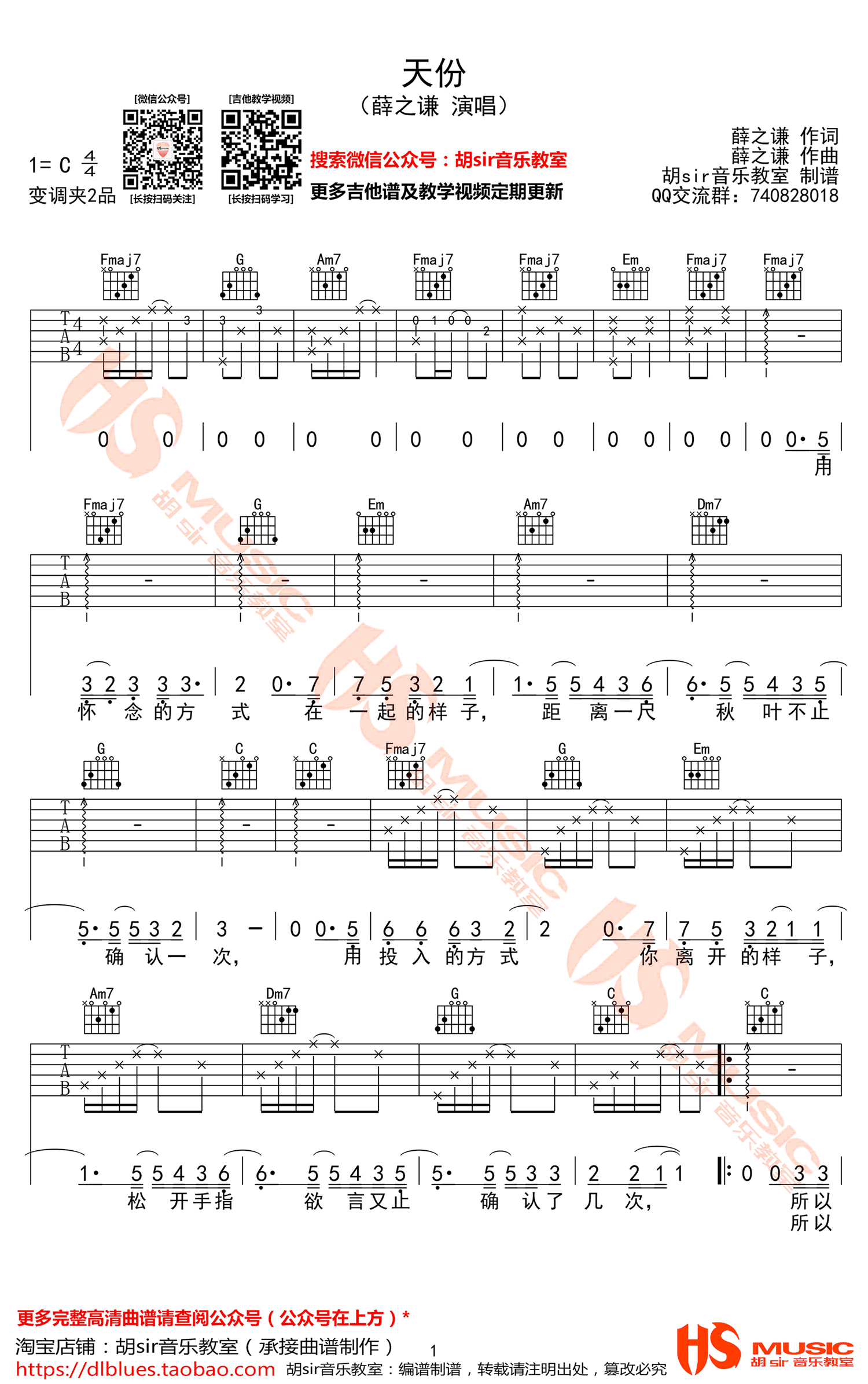天份吉他谱 - 薛之谦 - C调吉他弹唱谱