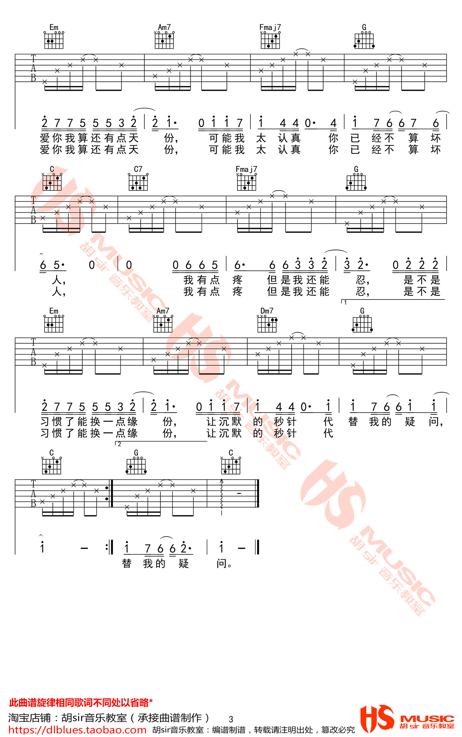 吉他弹唱C调来源:胡sir音乐846 浏览2020-01-08 14:23发布图谱共3页