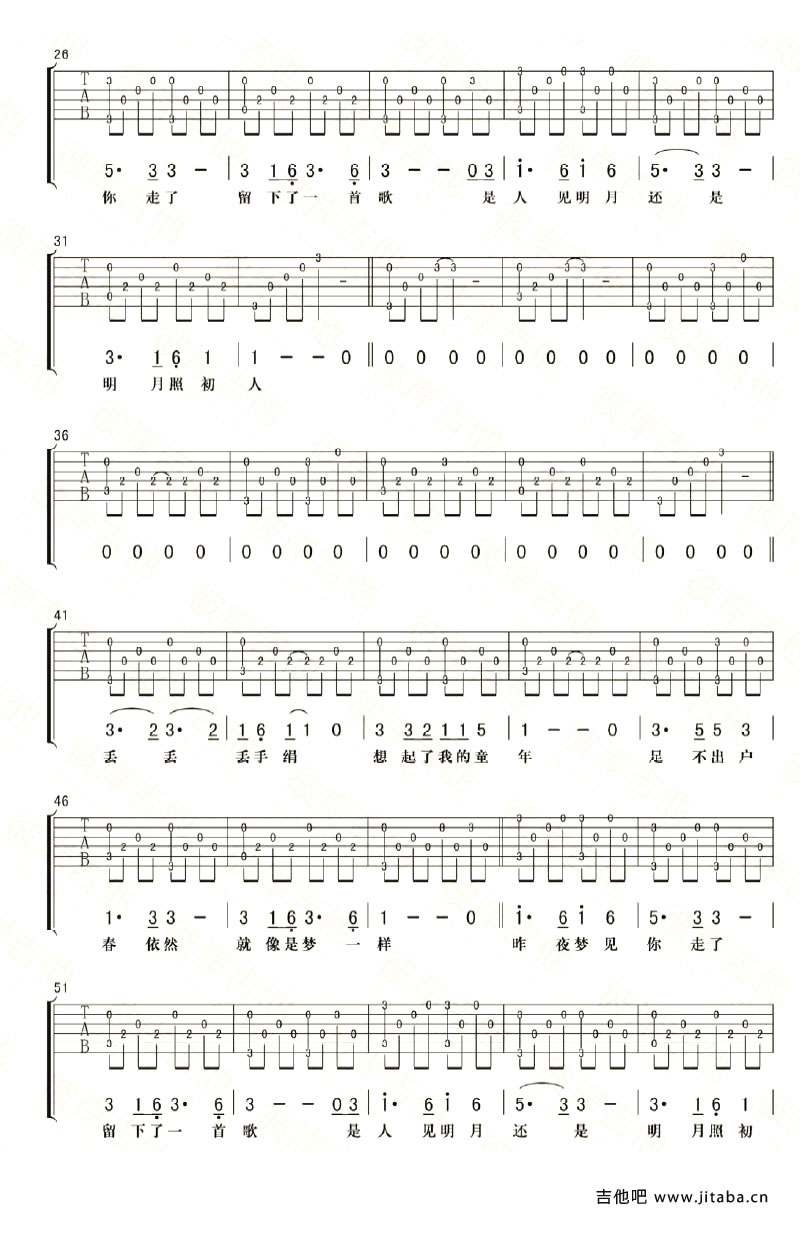 曲谱介绍: 低苦艾乐队小草草吉他谱,六线谱G调编配,三张图片谱。江畔何人初见月,江月何年初照人。小花花 小草草,小树树,小木木 ——低苦艾《花草树木》专辑歌曲吉他弹唱谱,这些歌儿听着不仅没那么萌,可能还会让你不自觉地眼泪掉下来~