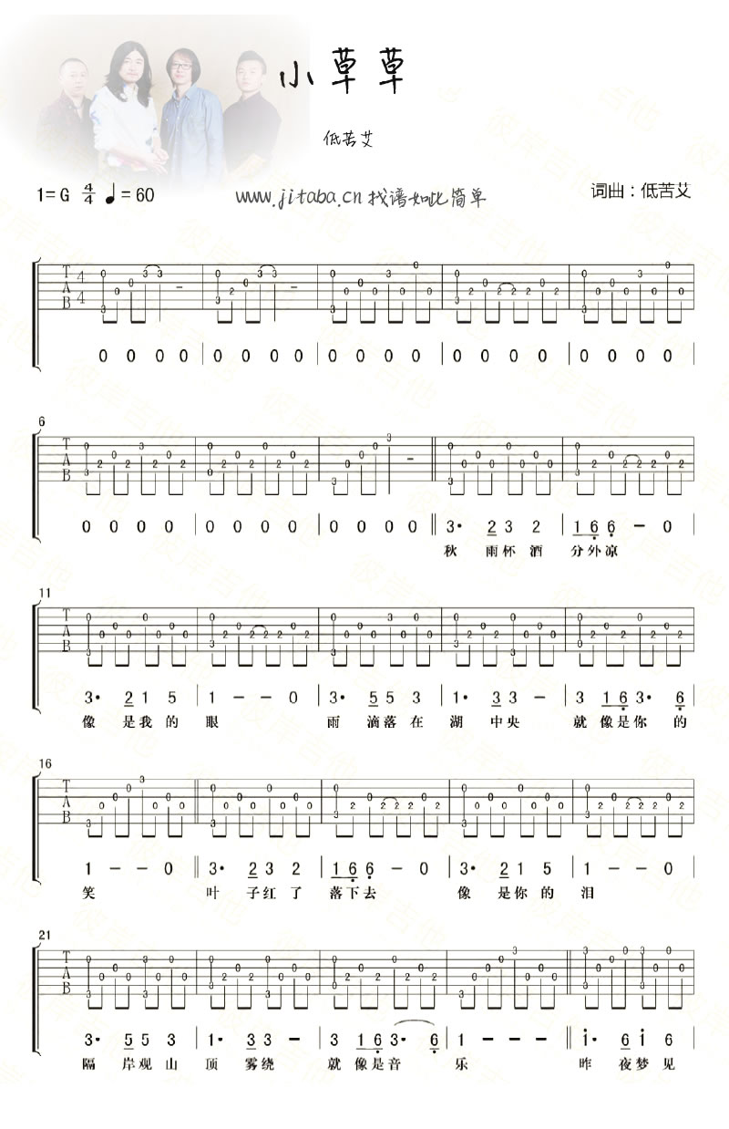 小草草吉他谱 - 低苦艾乐队 - 吉他弹唱谱