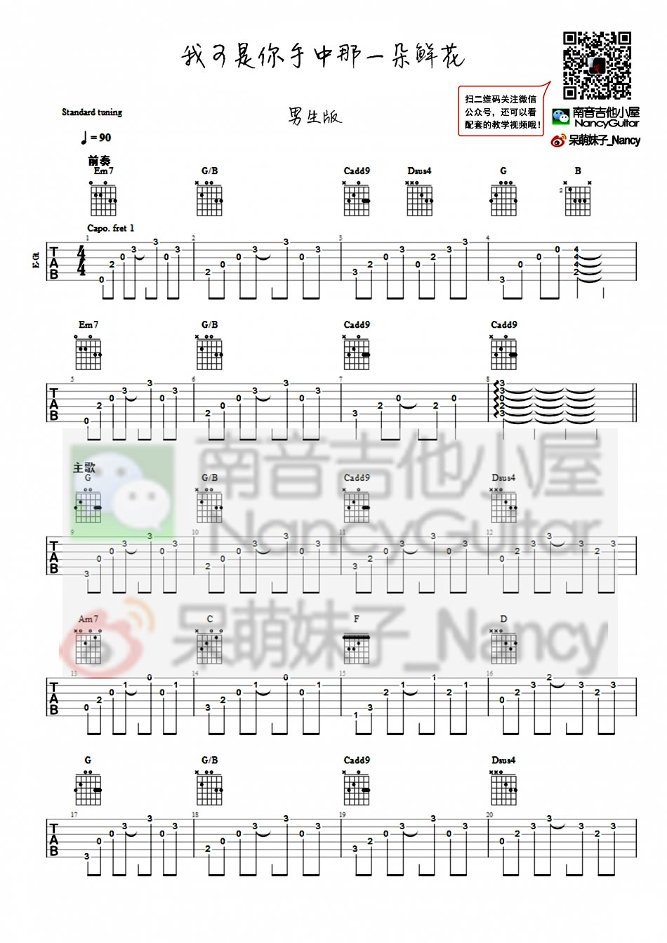 曲谱介绍: 我可是你手中那一朵鲜花吉他谱,六线谱编配带前奏,好妹妹乐队歌曲,我可是你手中那一朵鲜花吉他弹唱谱。感谢呆萌妹子Nancy扒谱分享。喜欢好妹妹乐队的歌曲,听着干净又舒服,唱出一种平凡和朴素的美好。好妹妹乐队吉他谱整理收藏。