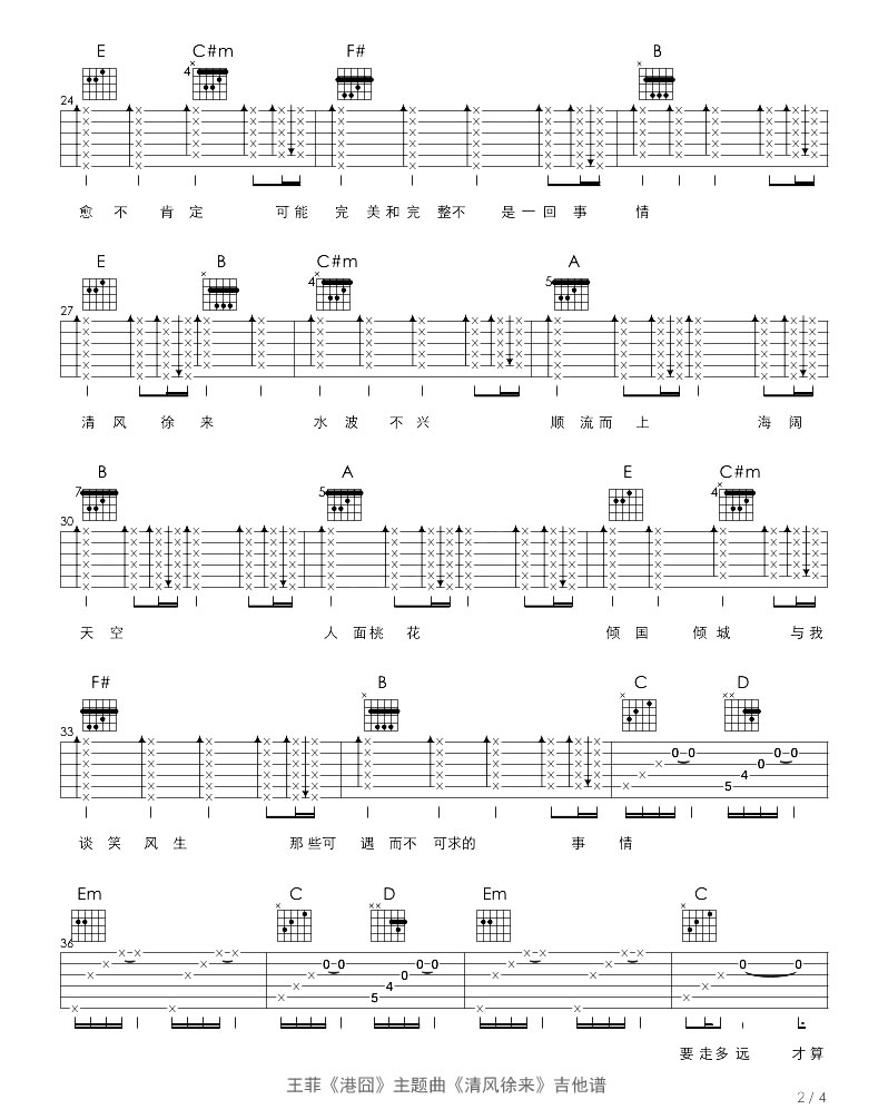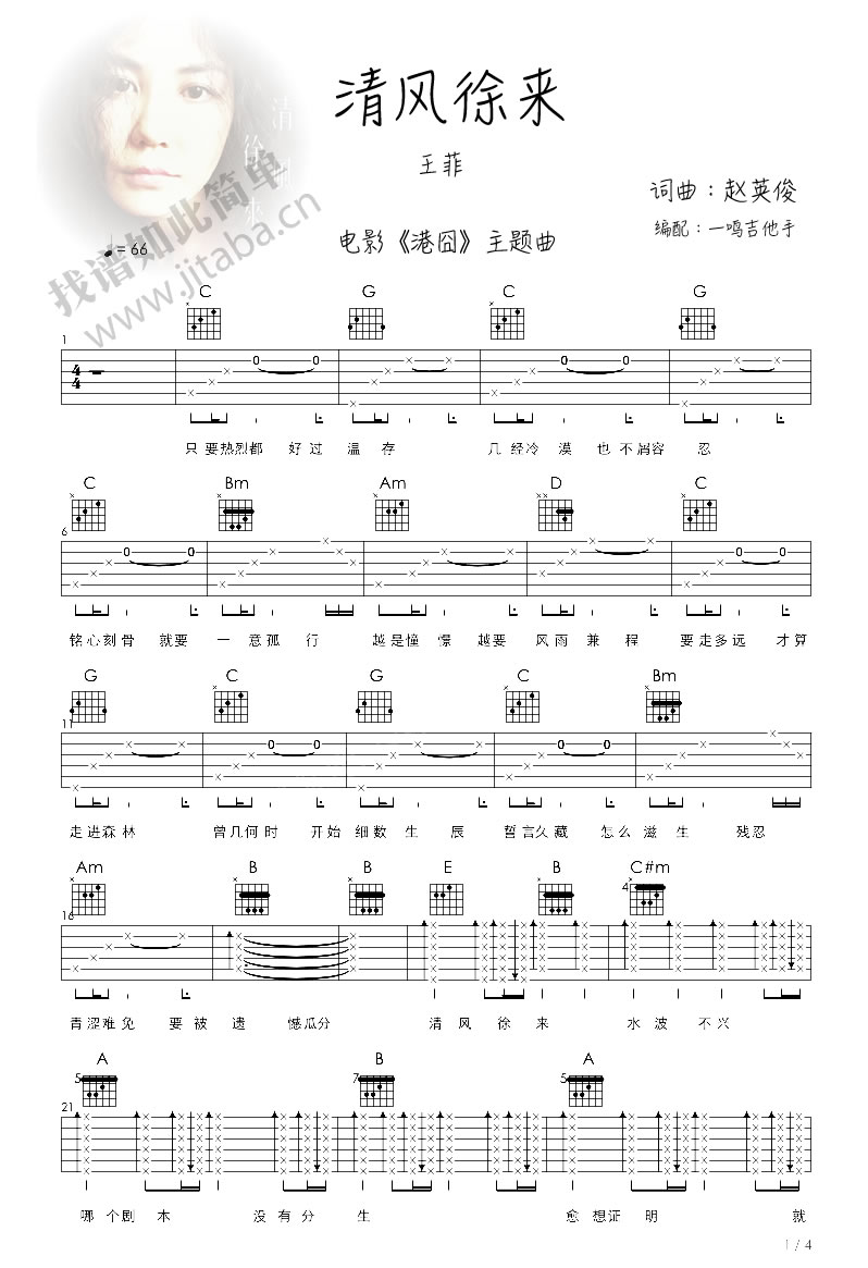 曲谱介绍: 王菲清风徐来吉他谱,电影泰囧主题曲,清风徐来吉他弹唱谱,六线谱编配,感谢一口鸟一鸣老师扒谱分享。继匆匆那年、致青春之后,天后王菲重度为电影献唱主题歌曲《清风徐来》,独特清丽的歌声,彷如天籁空灵飘渺,如幻如梦的旋律让人心旷神怡,在这浮躁喧嚣的城市里,唱出人们内心最深处的一抹淡然与宁静。