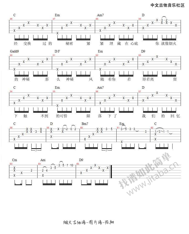 烟火吉他谱 - 陈翔 - G调吉他弹唱谱