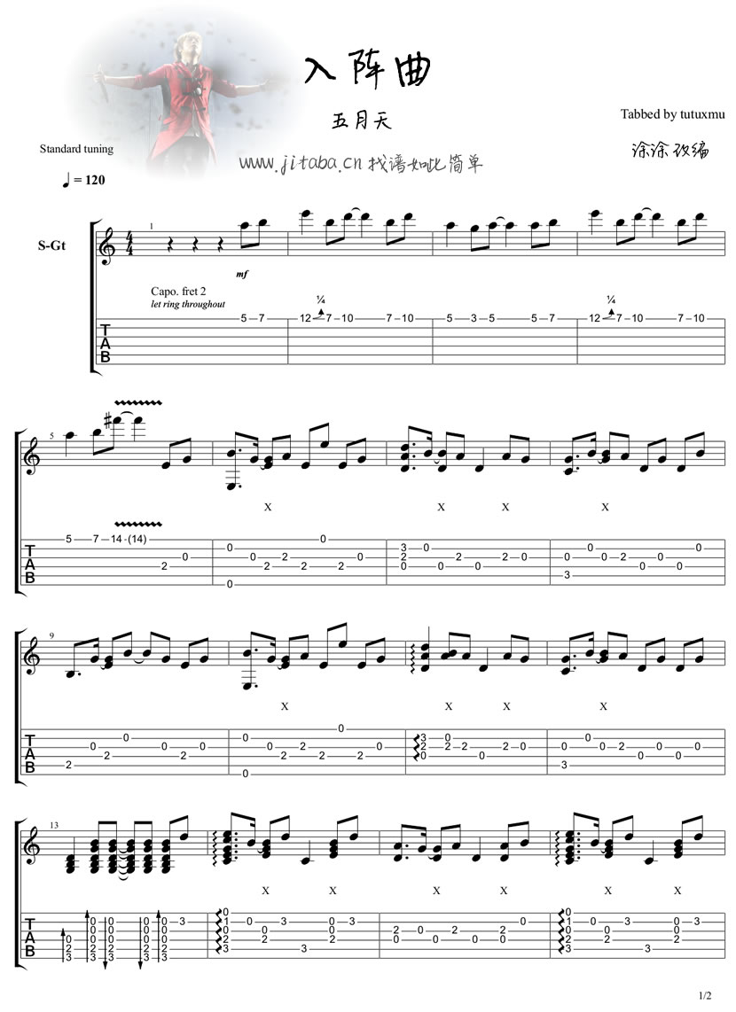 曲谱介绍: 五月天入阵曲吉他谱指弹版,电视剧兰陵王主题曲吉他独奏谱,感谢涂涂改编。一曲激昂铿锵心潮澎湃的旋律,听来真是酣畅漓淋,豪气顿生,“丹青千秋酿 一醉解愁肠 无悔少年枉 只愿壮志狂”,五月天吉他谱整理收藏。