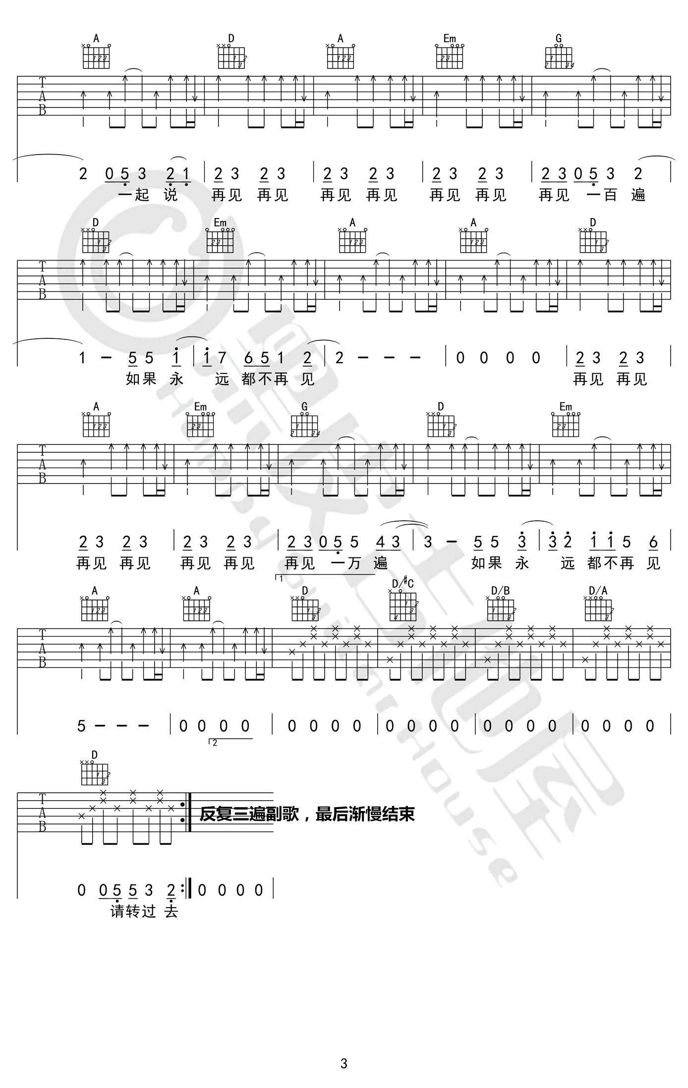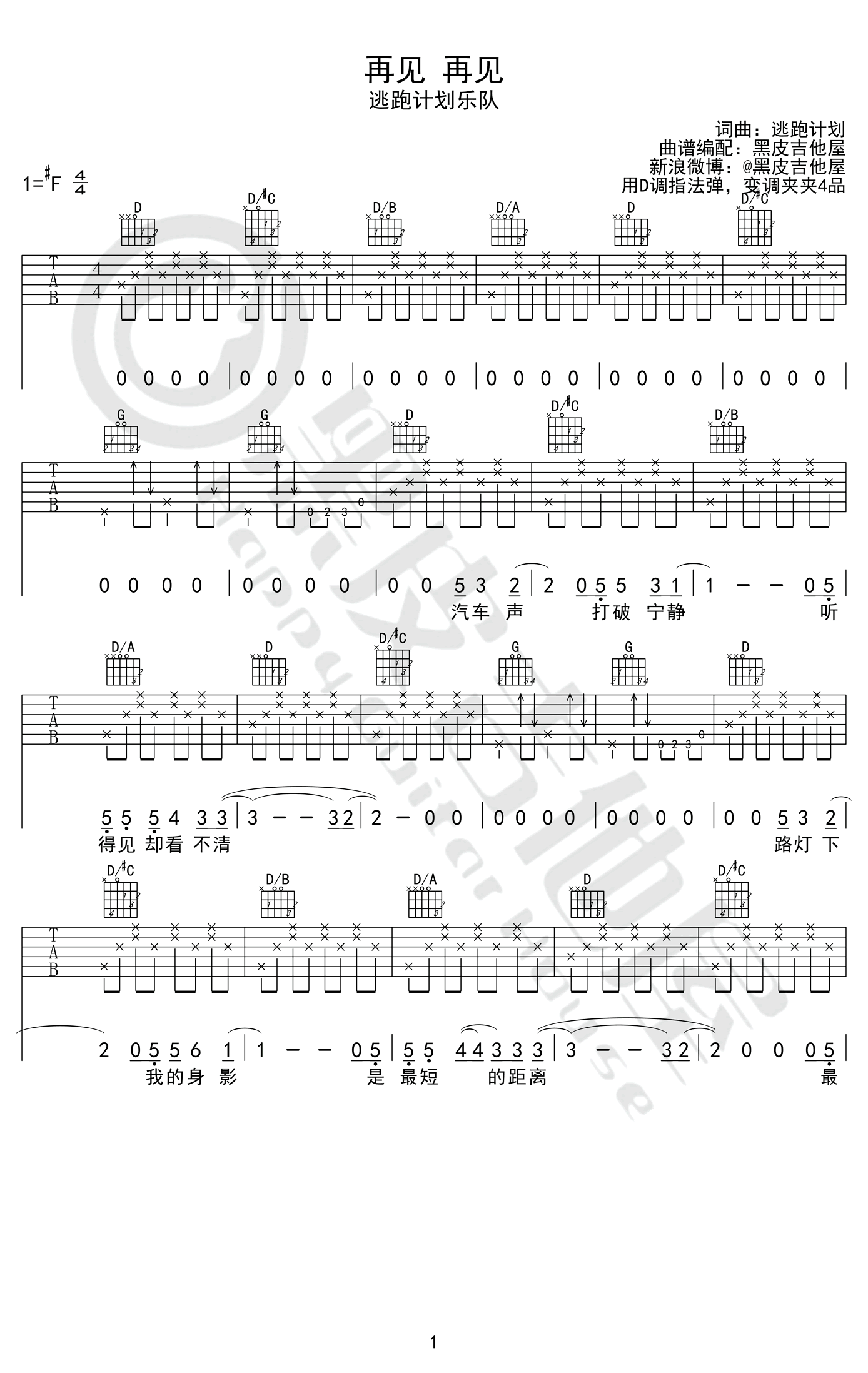 再见再见吉他谱 - 逃跑计划乐队 - 吉他弹唱谱 - 原版