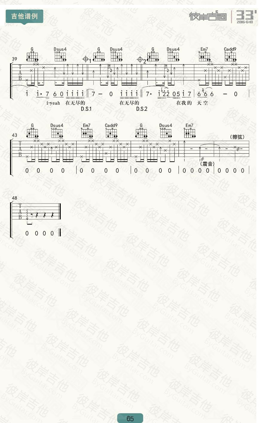 曲谱介绍: 我的天空吉他谱,南征北战乐队演唱,电影《青春派》主题曲,我的天空吉他六线谱,四张图片谱完整版,降半音调弦,用G调指法,感谢杨鑫编配。南征北战一首激情四射的摇滚歌,用呐喊唱出的梦想!句句唱出那个轻狂年代追梦途中遇到的点滴,路虽不平,但每一次跌倒都是成长,只要心里还有梦,总有人会为你感动!《我的天空》送给所有心存梦想的人们,抛开低落的心情,拨开让人迷茫的云雾,勇敢向过去说再见,坚定迈向前方,终会看到彩虹。