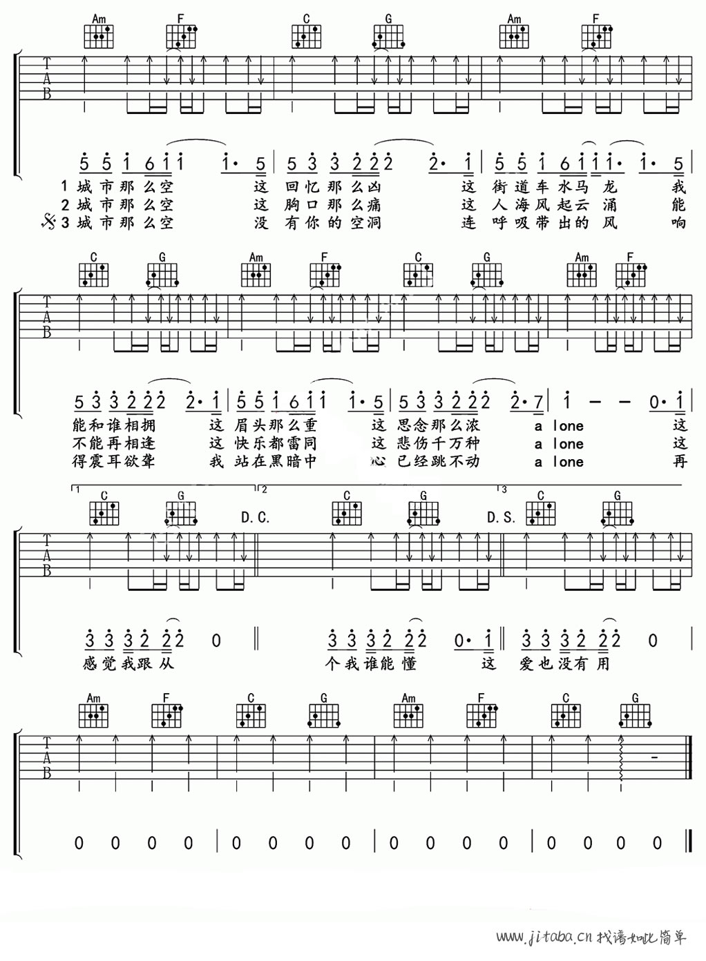 空城吉他谱 - 金志文/杨坤 - C调吉他弹唱谱