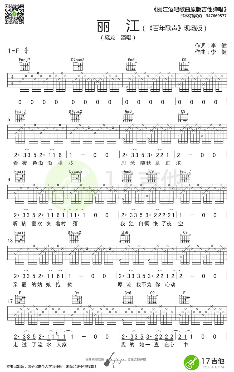 丽江吉他谱 - 庞龙/李健 - 吉他弹唱谱