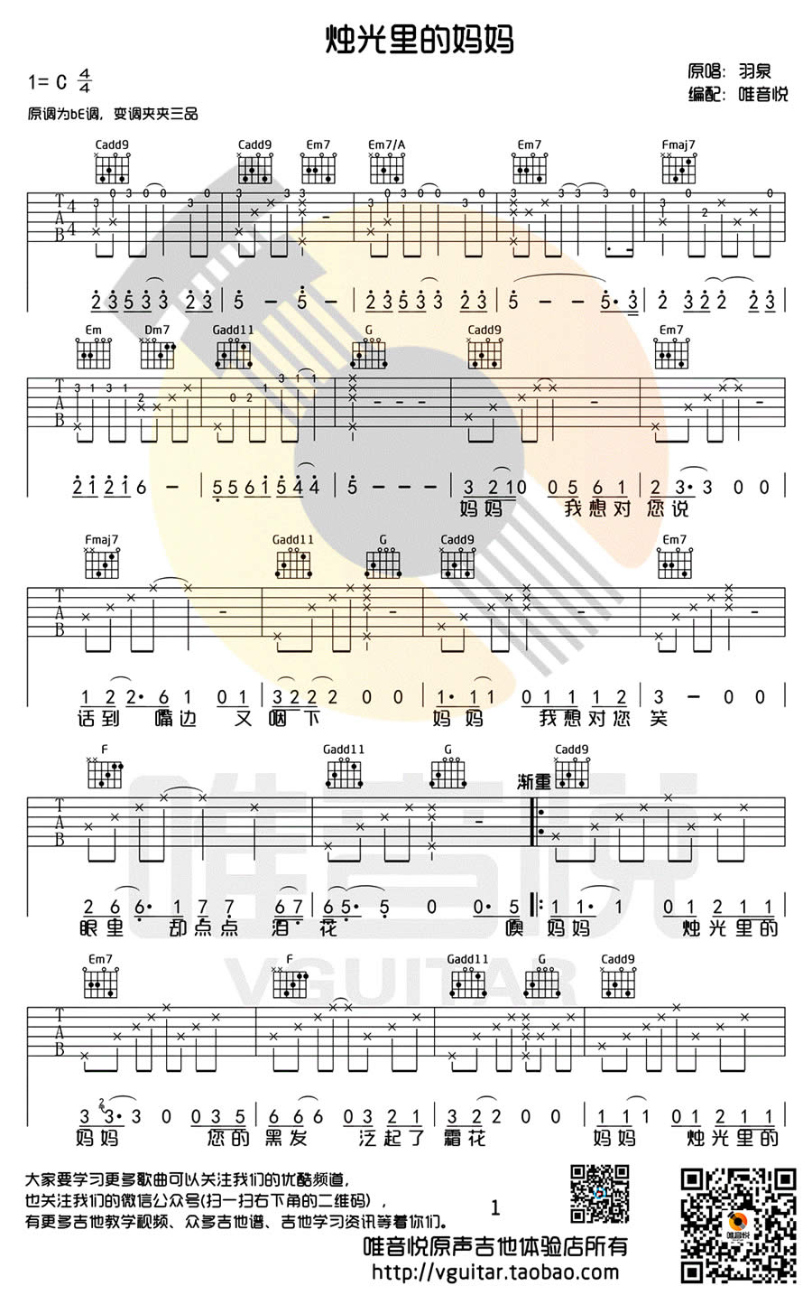烛光里的妈妈吉他谱 - 羽泉 - C调吉他弹唱谱