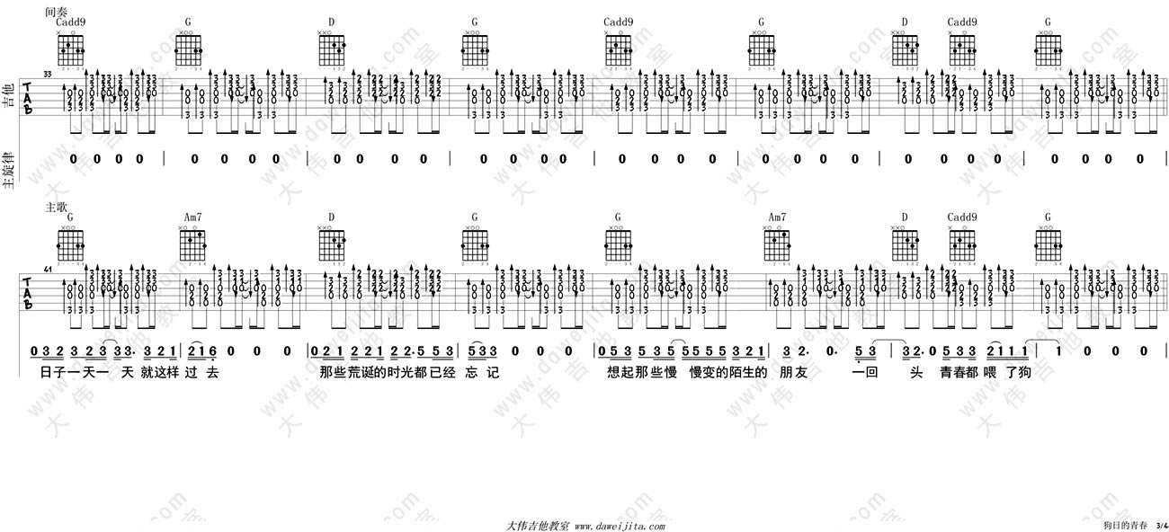 当前位置:琴谱网>吉他弹唱>狗日的青春