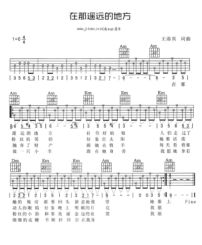 在那遥远的地方吉他谱 - 王洛宾 - C调吉他弹唱谱
