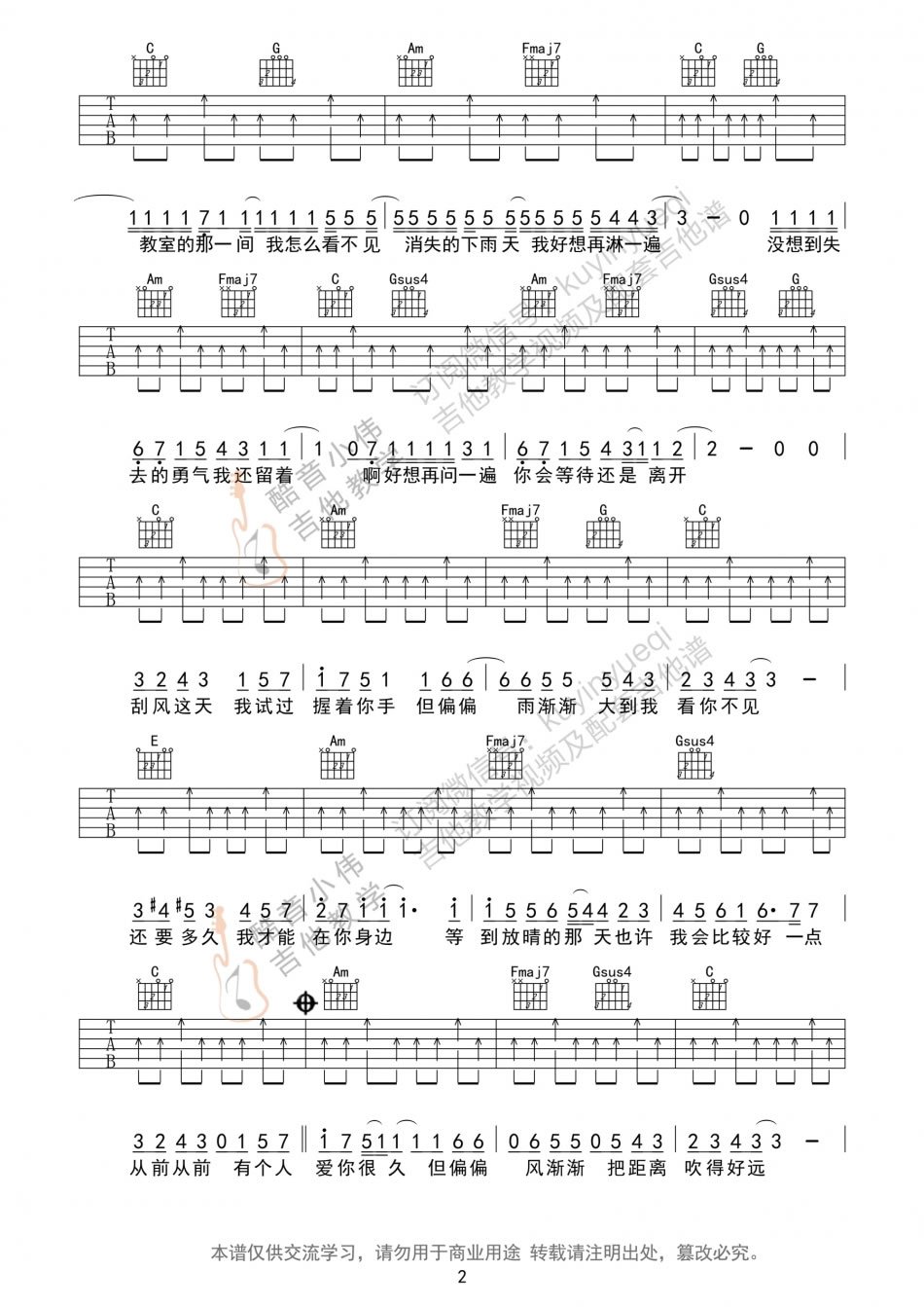 晴天吉他谱 - 周杰伦 - C调吉他弹唱谱