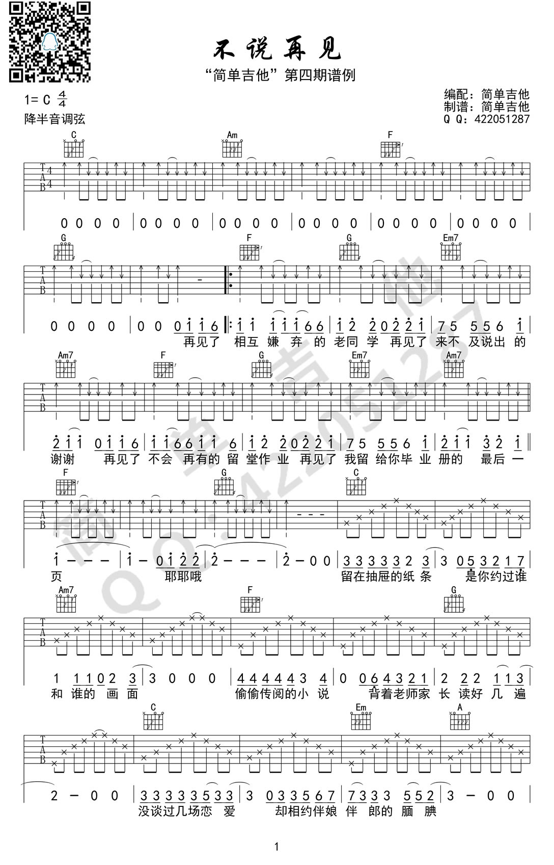 曲谱介绍: 不说再见吉他谱,好妹妹乐队为《谁的青春不迷茫》献唱的电影主题曲,不说再见吉他弹唱谱,C调指法六线谱,降半音调弦,简单吉他编配分享。谁的青春不迷茫,还有音乐在身旁。致敬青春,不见不散。