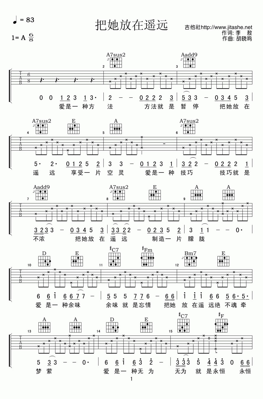 当前位置:琴谱网>吉他弹唱>把她放在遥远