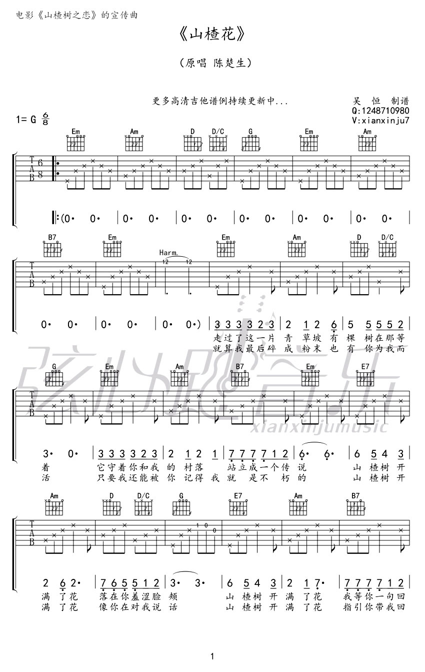 山楂花吉他谱 - 陈楚生 - 吉他弹唱谱