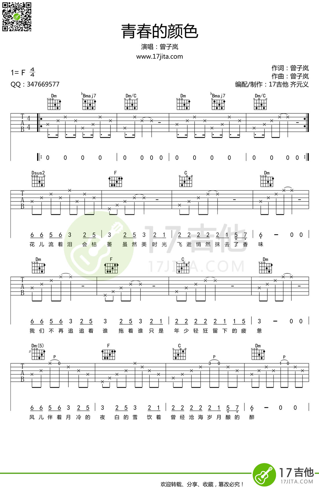 青春的颜色吉他谱 - 曾子岚 - 吉他弹唱谱