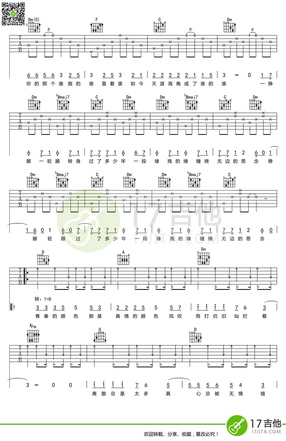 当前位置:琴谱网>吉他弹唱>青春的颜色