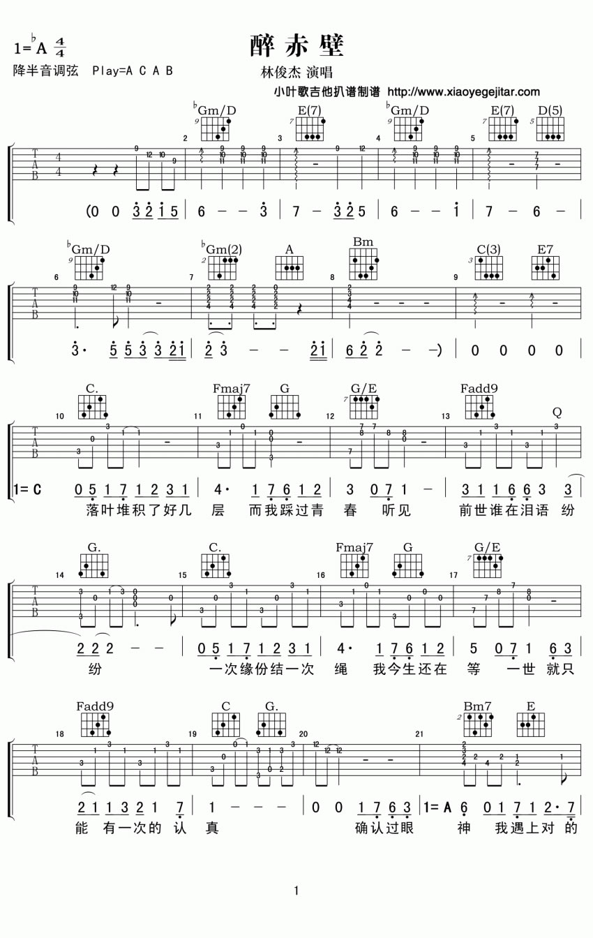 醉赤壁吉他谱 - 林俊杰 - 吉他弹唱谱