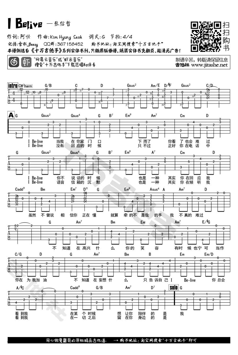 曲谱介绍: 张信哲 I Belive吉他谱,调式G,节拍4/4,I Belive吉他六线谱,张信哲为电影《我的新野蛮女友》献唱主题曲,情歌经典,深情再现,时光荏苒,感动如初,什么都会改变,却惟独音乐不会变。感谢雪糕_Beesy记谱,制谱辛苦,转载请保留版权相关信息。