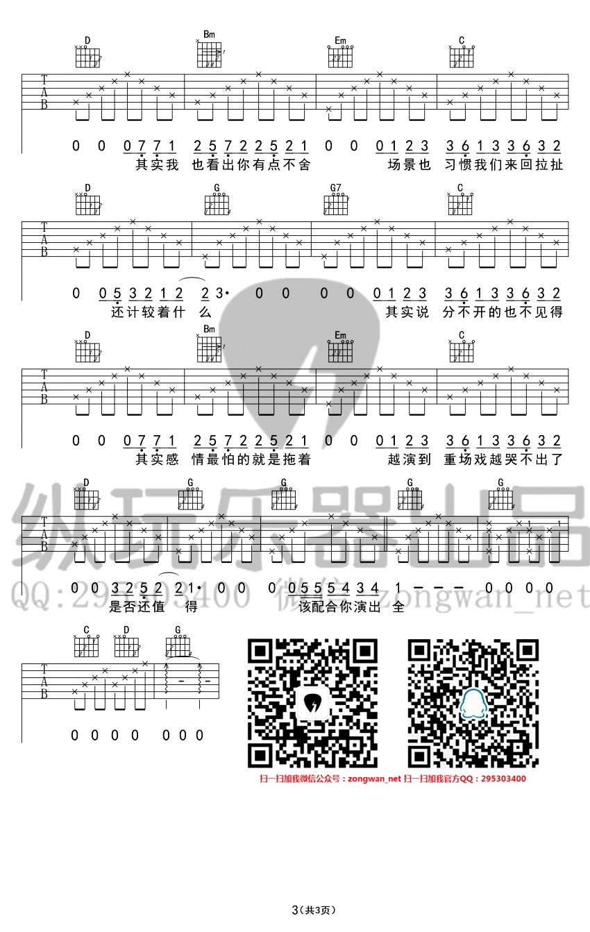 曲谱介绍: 演员吉他谱,薛之谦歌曲吉他弹唱谱,演员吉他六线谱,变调夹夹四品,B调,歌曲演奏不难,三张图片谱例,感谢纵玩乐器猫哥编谱。