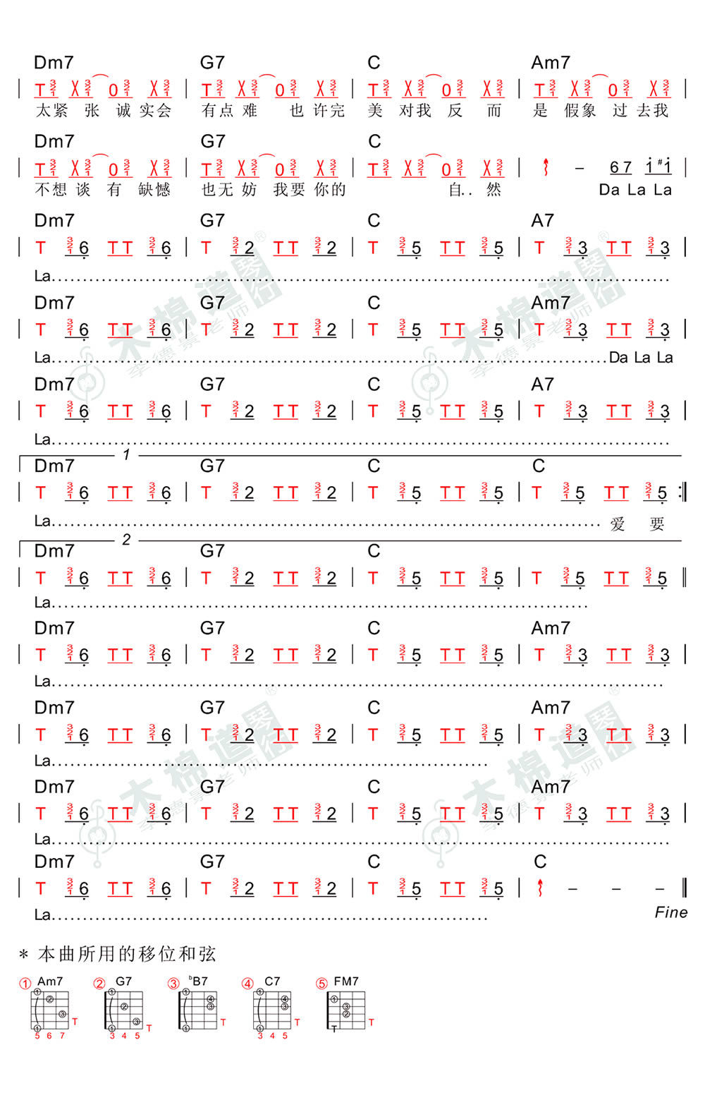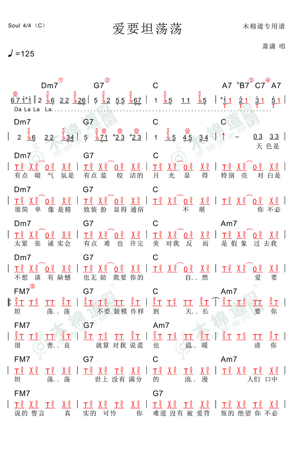 曲谱介绍: 爱要坦荡荡吉他谱,肖潇演唱,爱要坦荡荡吉他弹唱谱,曲谱所用到的移位和弦请查看图片谱标注。感谢木棉道专用谱例分享。一首旋律轻快的歌曲,唱出小女孩的自在和潇洒和对生活爱情的态度。