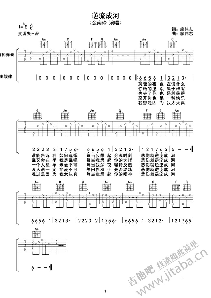 逆流成河吉他谱 - 金南玲 - 吉他弹唱谱