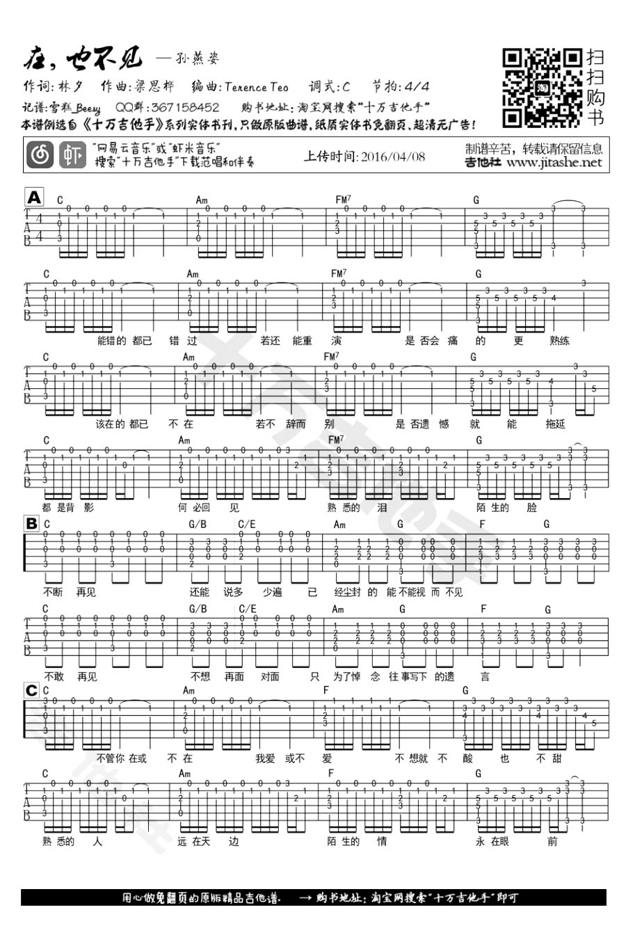 再见,在也不见吉他谱 - 孙燕姿 - 吉他弹唱谱