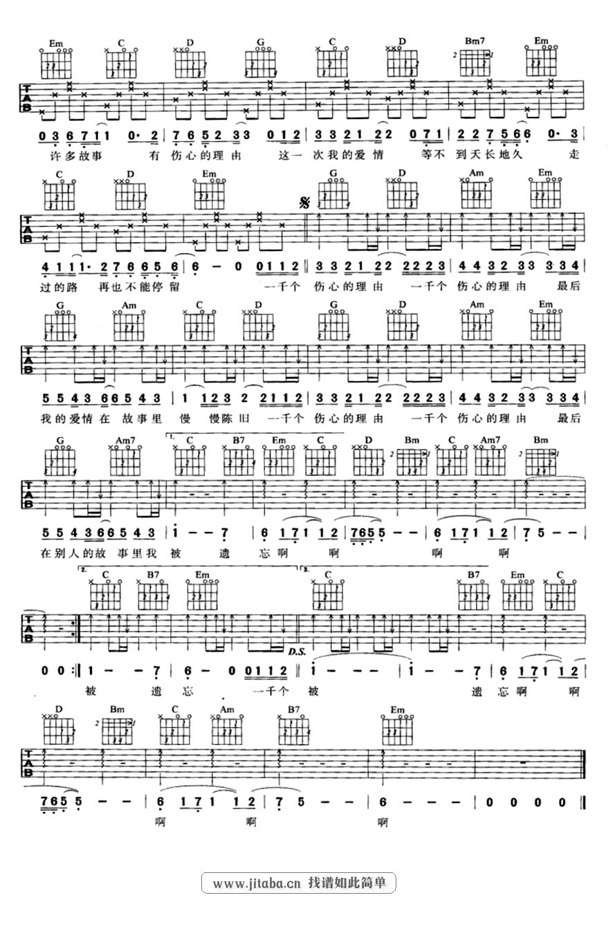 当前位置:琴谱网>吉他弹唱>一千个伤心的理由