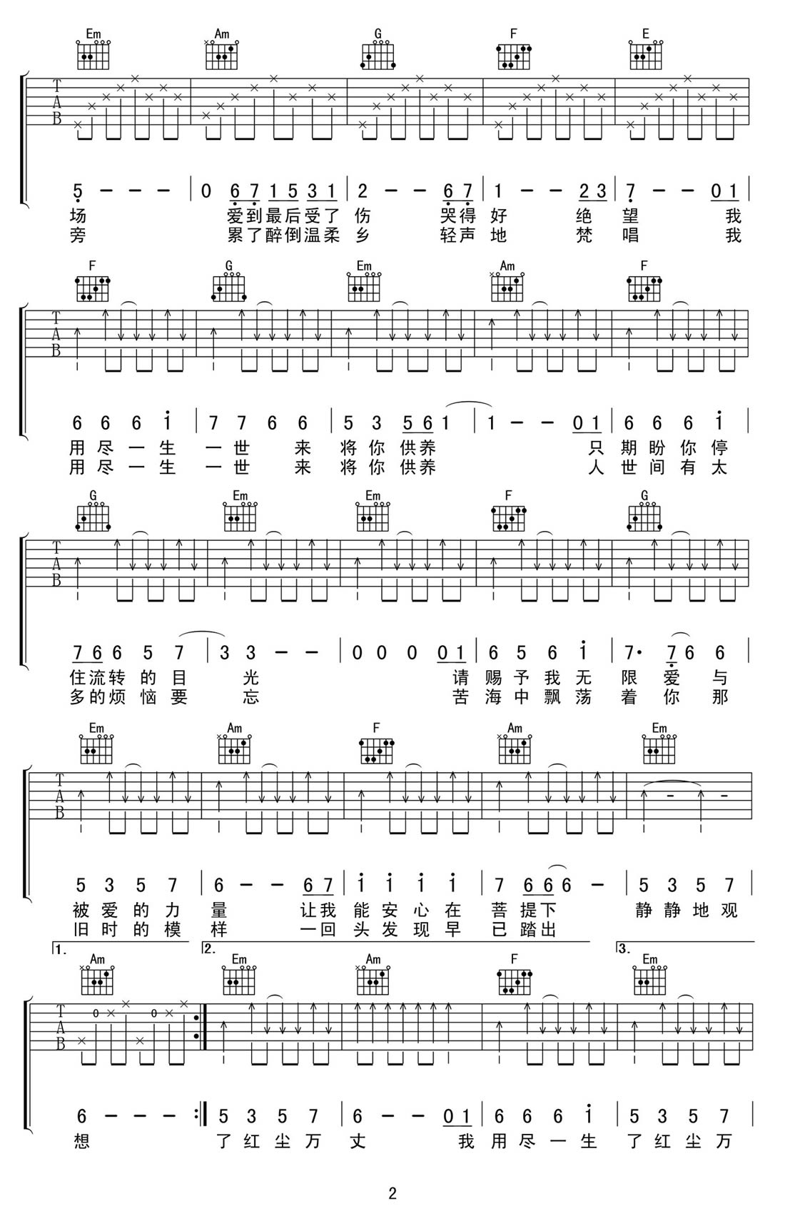 爱的供养吉他谱 - 杨幂 - C调吉他弹唱谱